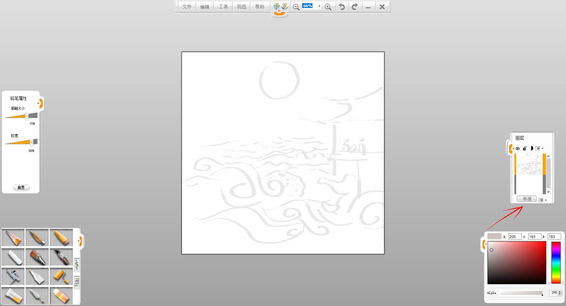 1. 打开乐画软件,生成一张空白的画卷。