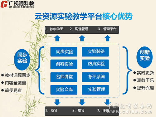 云资源实验教学平台将同步实验、名师讲堂、创客实验、装备使用、创新实验等资源,融合校园信息化智能控制系统和国家教育资源公共平台,有效解决了实验课程开课率不高,实验装备不完善,学生对科学实验的兴趣不高,实验装备的使用与维护不到位,等实验教学和管理的疑点、难点、痛点等问题,有效提升教学质量。