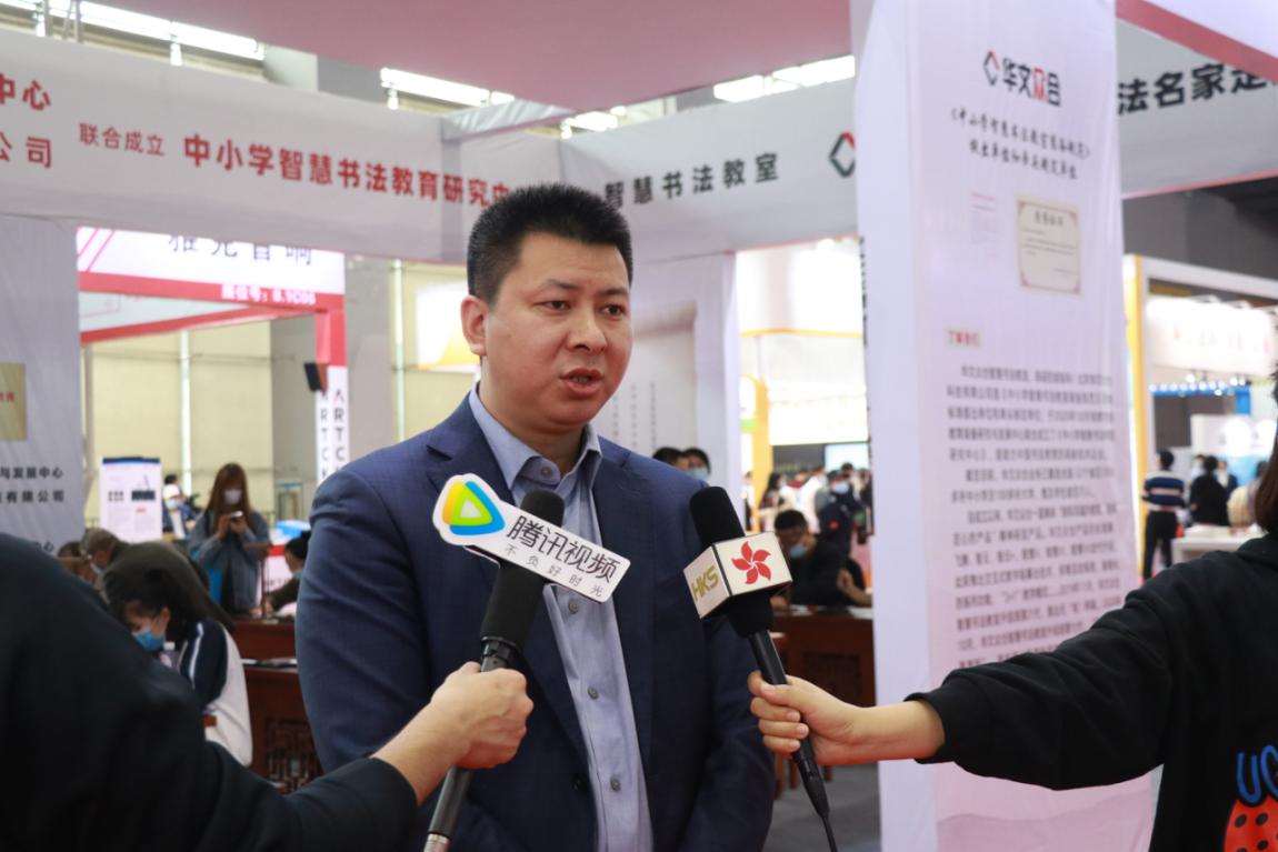 凭借着前沿的技术与出色的产品,华文众合智慧书法教室吸引了众多参观者的热议与驻足。展会现场,华文众合副总裁陈方义接受了新华网、香港卫视、广州日报、腾讯视频等多家媒体记者的采访,分享、阐述华文众合对智慧书法教育产业发展的理解与思考。
