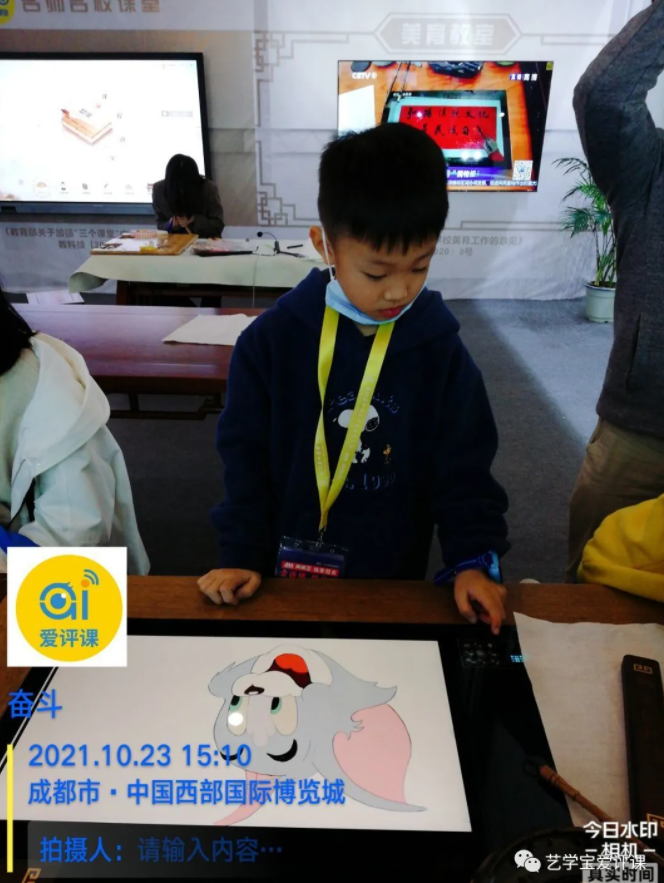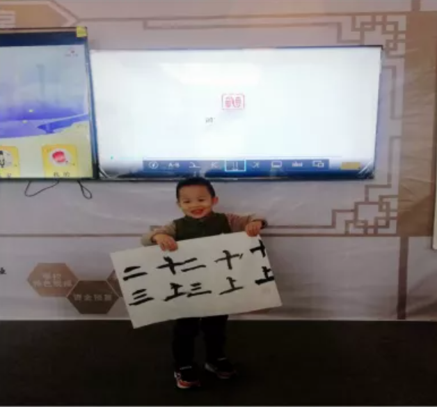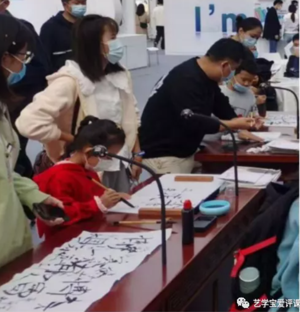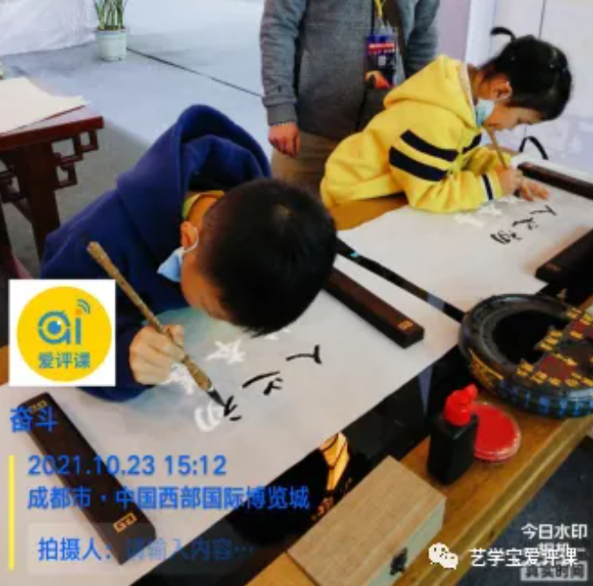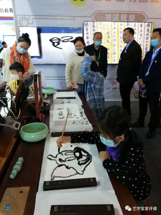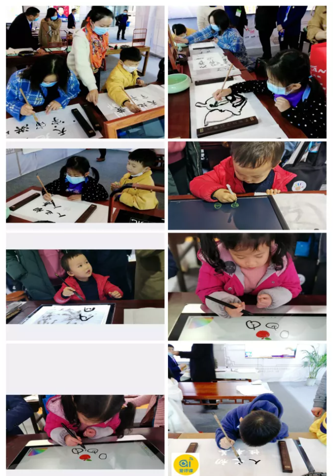 展会现场,智慧书法很受各年龄层次者的欢迎:从2岁多到50多岁成年,有幼儿园同学、小学生、电教站和教育工作者。 双减下,孩子有时间写写画画唱唱跳跳,显得更有活力和朝气。