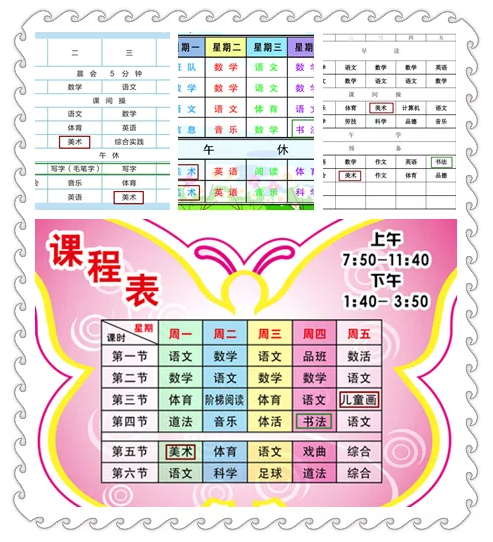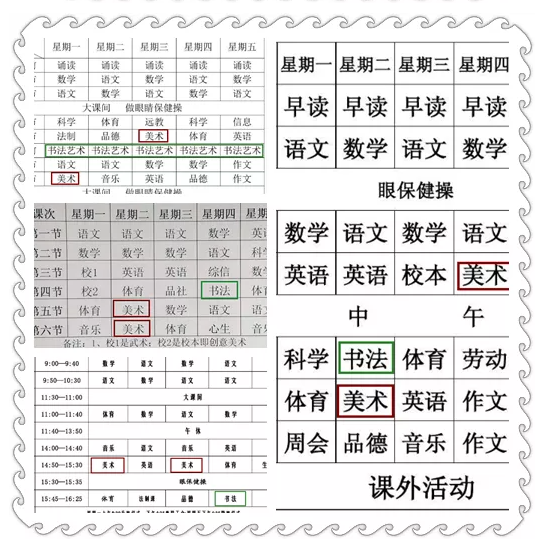 结果显示:课表上书法和美术每周分别为1节和2节......