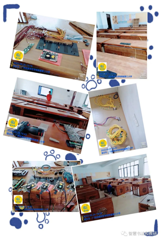 五月中旬, 工程师胡睿刚忙完长塘里小学书法教室,过了隔离期,经过连续几日核酸检测后赶往广西民族师范附属第三小学,开始了智慧书法教室的规划、布局、施工。