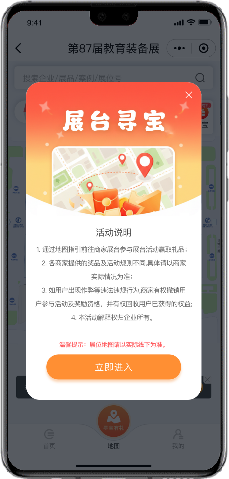 为提升第87届中国教育装备展示会观展现场互动性和趣味性,同时合理有效的引导展馆人流饱和度,特在本届展会期间开设现场“展台寻宝”活动。活动流程如下: